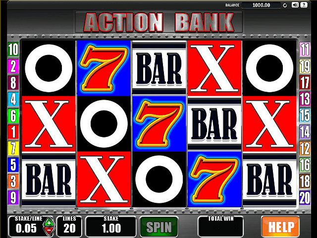 Action Bank er en automat med middels varians så den vinner sånn passe mye fra tid til annen, og kan spilles fra kun 0,20 mynter per spinn og helt opp til 200 mynter per spinn. Den har en avkastning på 95,16 % spilleren og en maksimal utbetaling på 25 000 mynter.