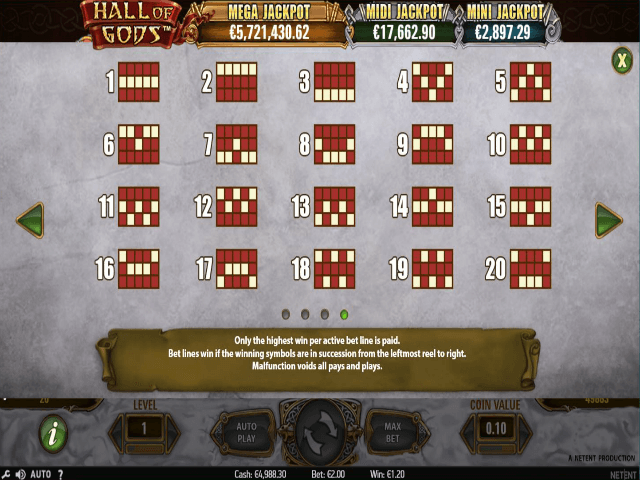 Wow, her er et godt eksempel på et kanonbra spill som er verdi selv norrøne guder! Spilleautomaten Hall of Gods kommer fullpakket med bonuser og spenning, og levert av programvareleverandøren NetEnt, som har gjort en god jobb å bringe sammen de mest kjente og mektige figurene i Norrøn mytologi; som blant annet Tor, Odin, Frøya, Loki og Idun.
