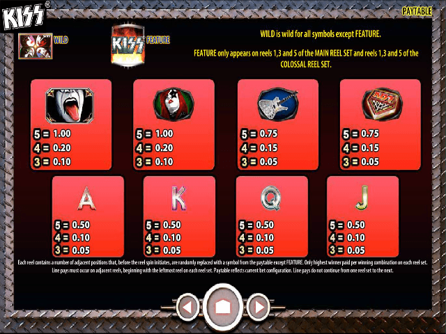 Symbol 3x utbetaling 4x utbetaling 5x utbetaling Plekter 0.05 0.15 0.75 Gitar 0.05 0.15 0.75 Starchild 0.10 0.20 1.00 Demonen 0.10 0.20 1.00 Det kan kanskje virke som om disse utbetalingene er i nedre del av sjiktet, men du kan være trygg på at det venter spillerne større rikdommer, alt takket være de spesielle egenskapene i denne hoderistende, tå-trippende tittelen.