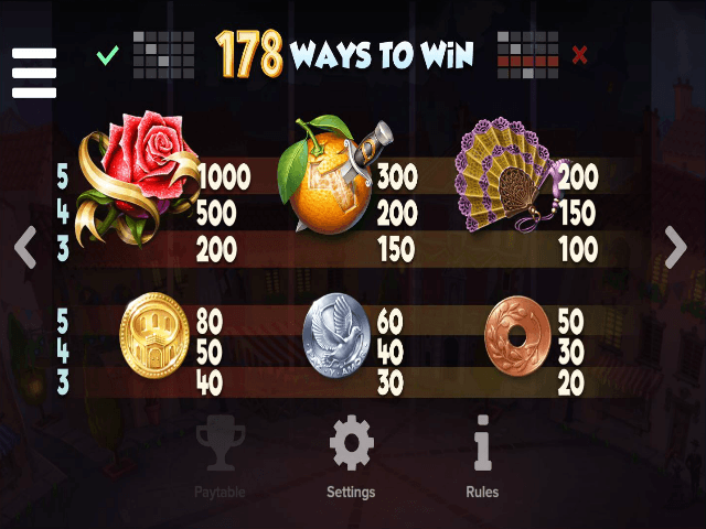 Du må ha minst tre symboler på rekke for å få uttelling - selvfølgelig ikke så enkelt å holde oversikten når det er nesten 200 ulike gevinstlinjer. "Wild Toro"-symbolet er wild i spillet, og fungerer som joker. Symbolene er fine, men kanskje litt store og overveldende.
